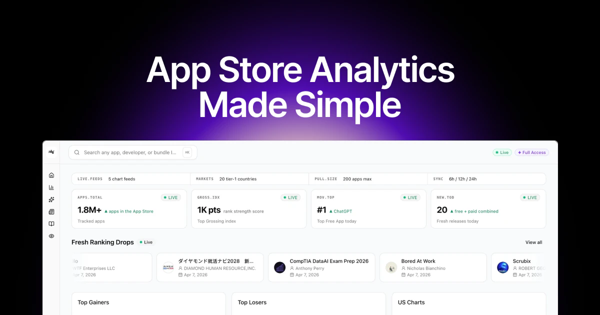 Explore App Store data to analyze competitors, spot trends, and discover high-potential app ideas. Make smarter decisions with real insights instead of guessing.