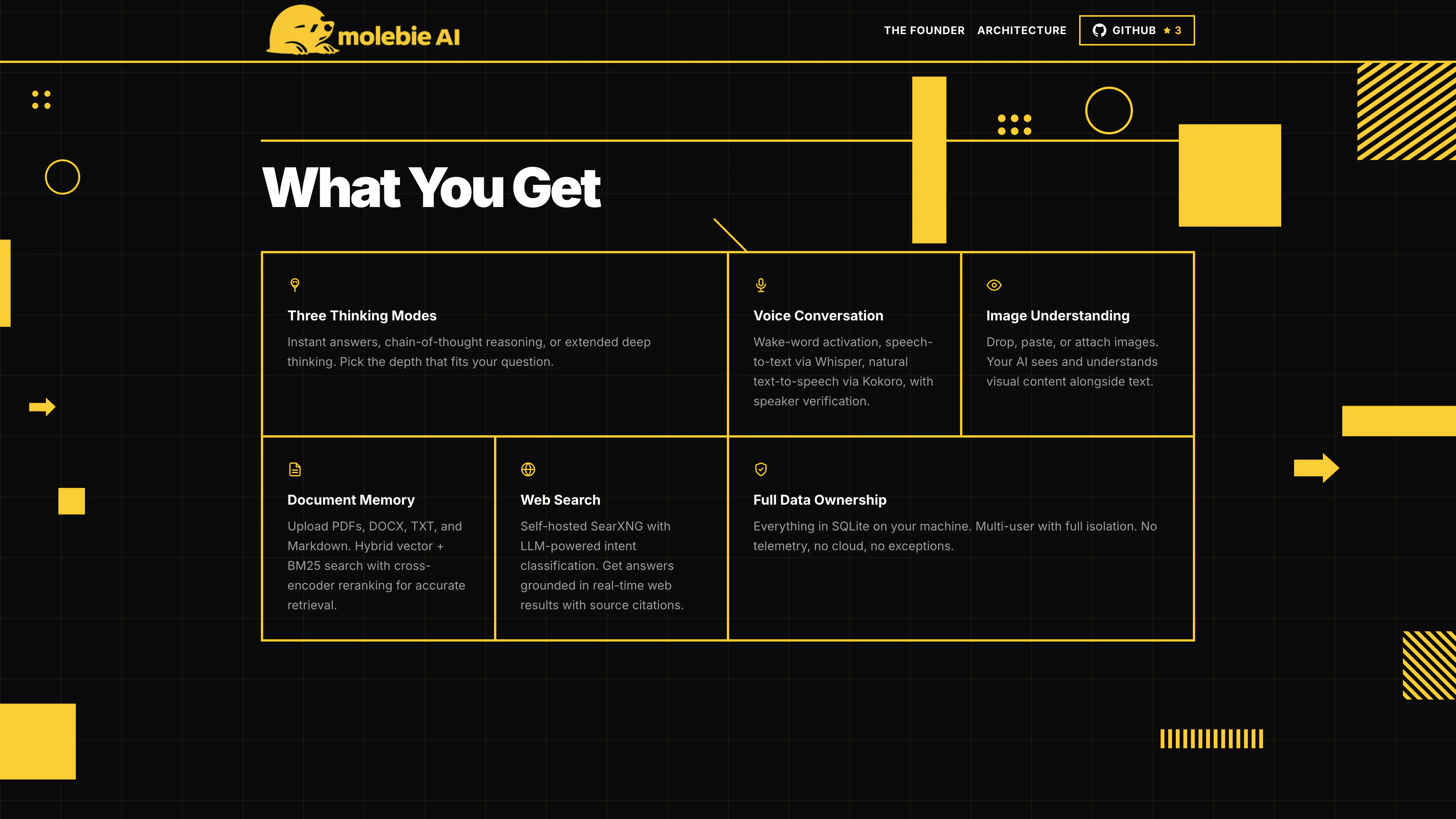 Molebie AI is a fully self-hosted AI assistant you run on your own hardware. It supports voice conversations with wake-word activation, image understanding, RAG document memory (PDF, DOCX, TXT), and web search, all with zero cloud dependency. Works with any backend: MLX, Ollama, vLLM, llama.cpp, or OpenAI API. Currently runs as an all-in-one localhost setup multi-machine split coming soon. Still actively building and testing. You're welcome to try it out and share feedback! Private. Fast. Yours.
