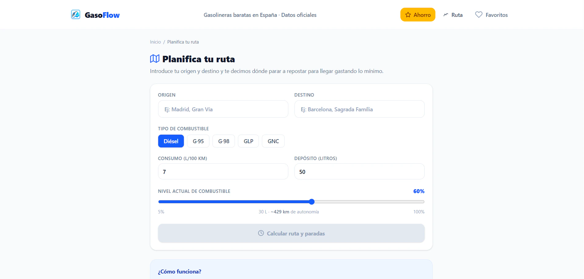 Gasoflow helps drivers in Spain find the cheapest fuel in seconds. Compare gasoline and diesel prices across every gas station in the country using official government data updated in real time. Quickly locate the lowest prices near you and stop overpaying for fuel.