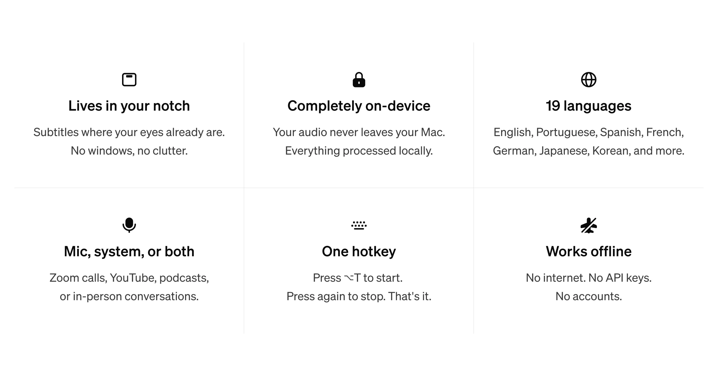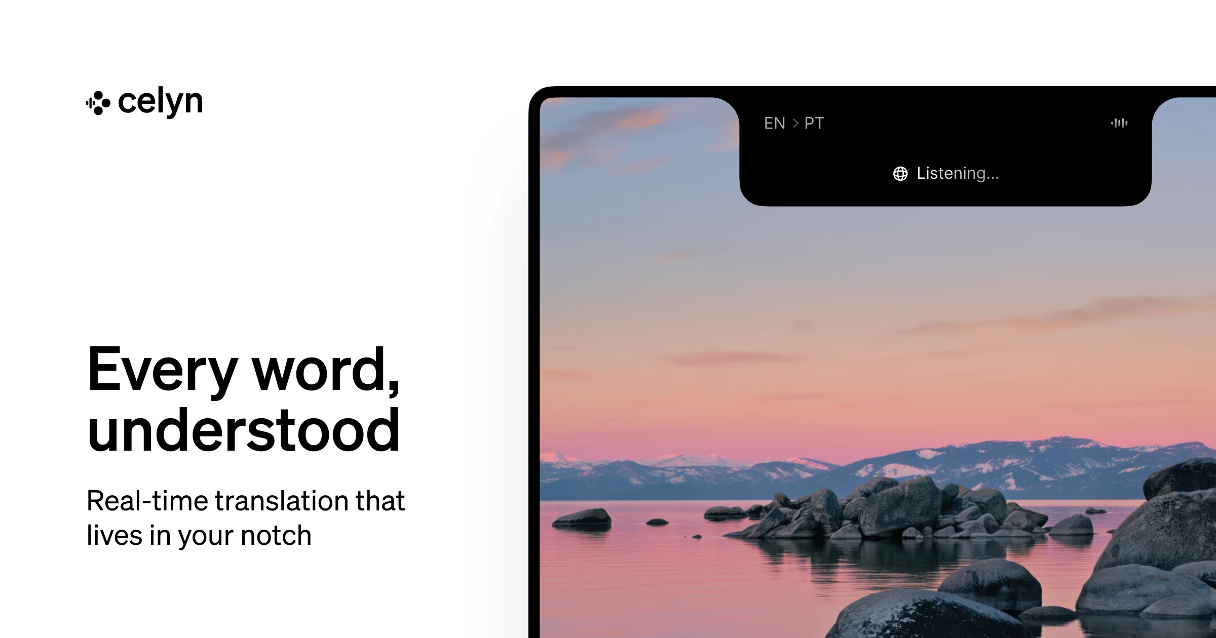 Celyn lives in your notch and translates audio in real time. Speak into your mic, join a Zoom call, watch a YouTube video, listen to a podcast — and Celyn shows you the translation instantly, right at the top of your screen. No switching apps, no interrupting anyone, no lag.