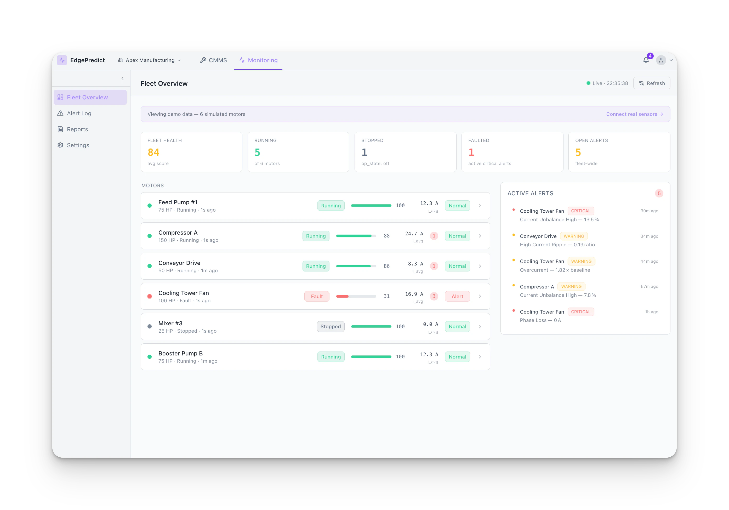 Free CMMS + Motor Monitoring. One system.