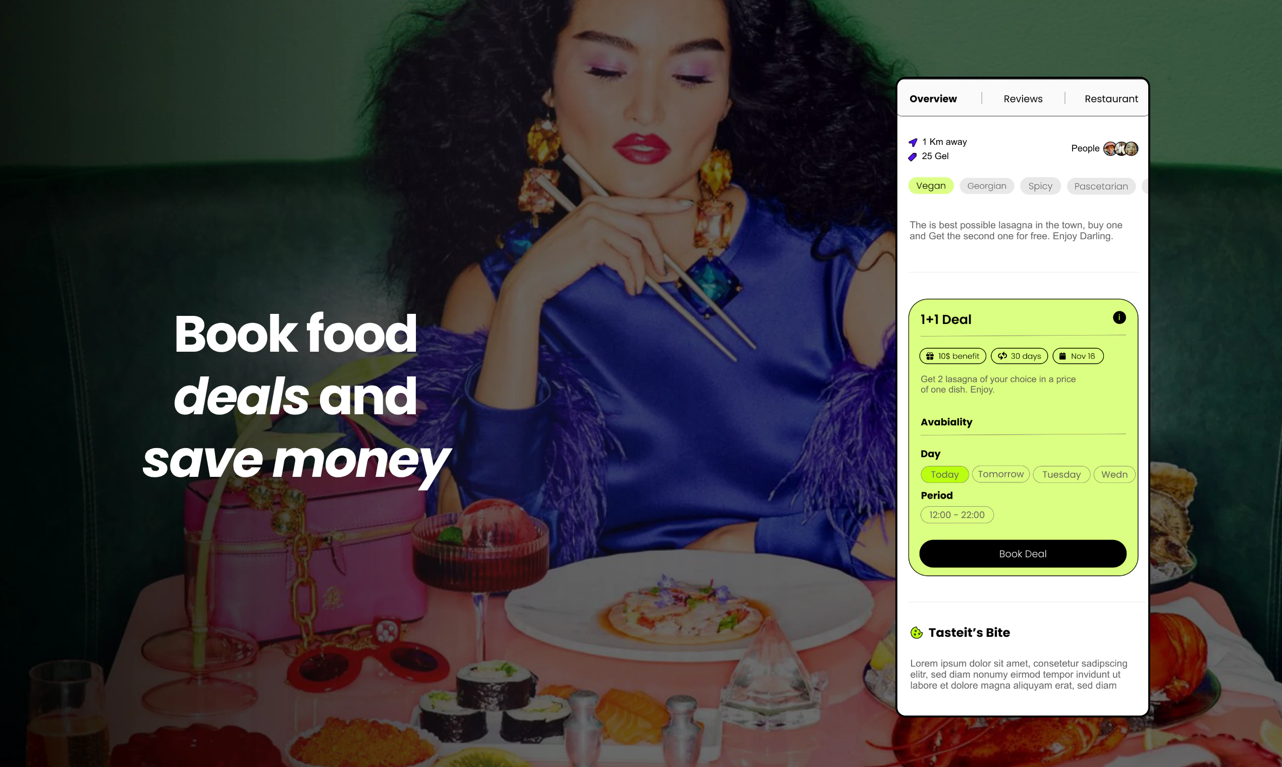 Nobody owns food as a social behavior. Until now. Tasteit is the Food Social Network. A dish is your entry point - discover it, see who loves it, turn that into a real meal together. Just food as the most natural reason to meet.